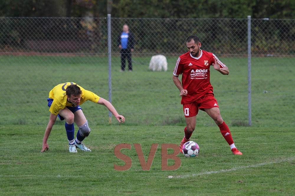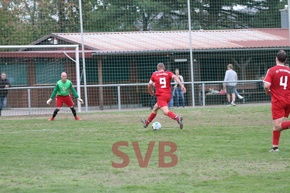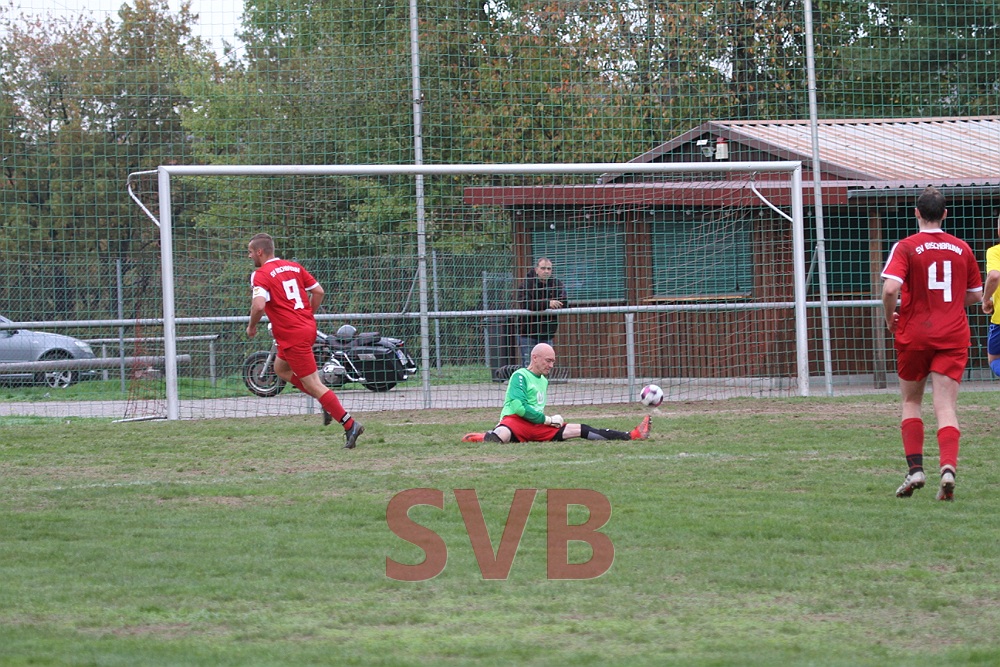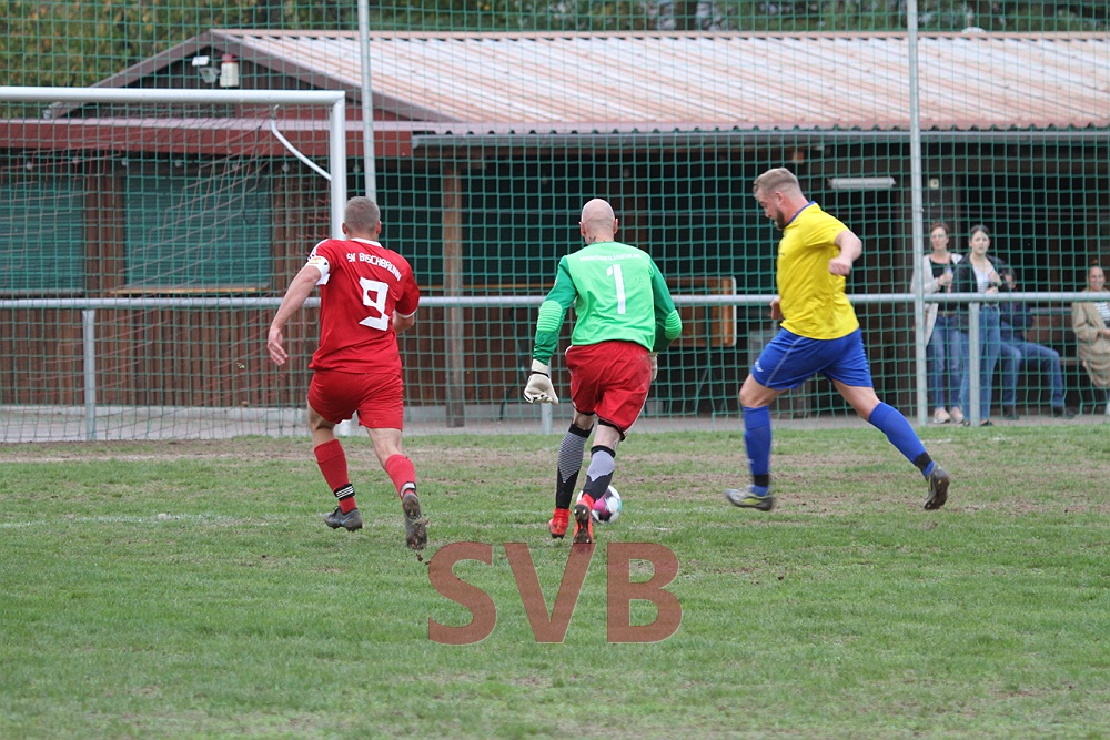 In der 26. Minute meldete sich auch die Heimelf ein erstes Mal zu Wort, als André Reinfurt aus knapp 30m einfach mal abzog. Der Schuss knallte gleich mal gegen die Latte. Drei Minuten später der nächste SVB-Angriff, Michael Väth hatte die Pille bereits am herauslaufenden Keeper vorbeigelegt, kam dann jedoch nicht mehr zum Abschluss, da Philipp Gress noch von der Seite kam und löschte.