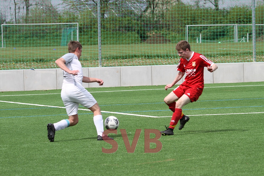 Anschließend hatte der SVB zehn gute Minuten und bekam prompt einen Handelfmeter zugesprochen. Vin Beeger scheiterte jedoch am Heimtorwart Bertignoll, so dass es vorerst beim 4:0 blieb. Drei Minuten später war es aber doch passiert: Sebastian Rodriguez spielte gut auf Rechtsaußen zur Oberndorfer Leihgabe Max Emmert, der noch bis zur Grundlinie ging und schön flankte. Florian Bauer stand einschussbereit im Fünfer und lochte artistisch ein.