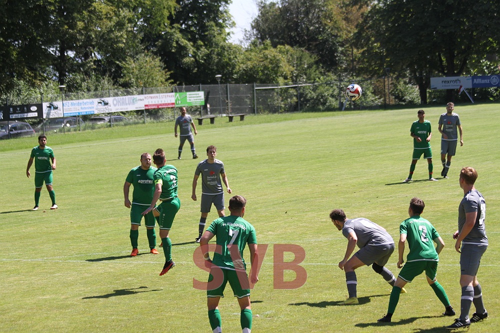 Zwar schafften es die in grau spielenden SGler bis zur 20. Minute die Gäste weitestgehend vom eigenen Tor fernzuhalten und hätten durch Florian Bauer sogar in Führung gehen müssen – ihm fiel am rechten Fünfereck die Kugel vor die Füße und er drosch sie knapp am Giebel vorbei – aber spätestens mit dem 0:1 durch Fabio Fretschner ließen die Straub-Roth-Schützlinge die Köpfe hängen.