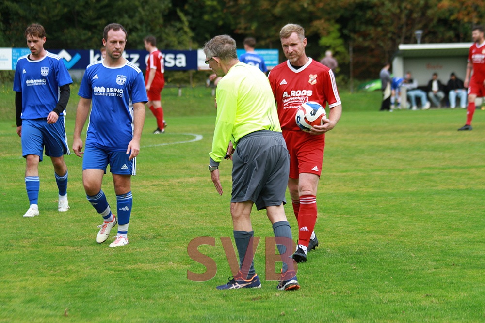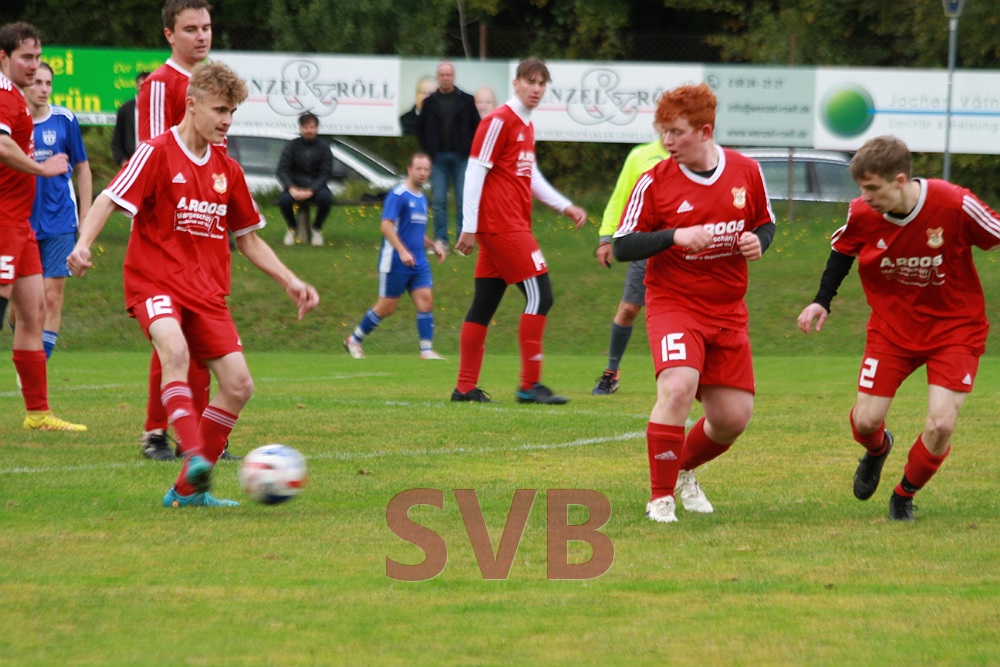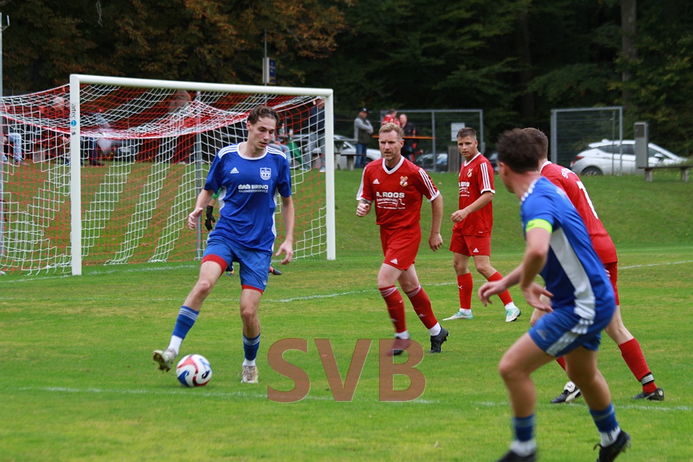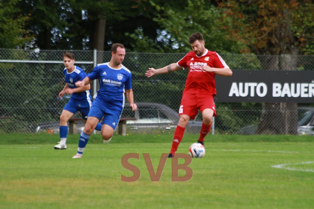 Nach anfangs ungefährlichen Bällen an den 16er auf beiden Seiten hätte die SG von der achten bis zur zehnten Minute gleich drei Mal in Führung gehen können. Aber erst stellten die beiden Spielertrainer Sebastian Roth und Stefen Straub den gegnerischen Keeper Jan Kaiser vor keine ernsthaften Probleme mit ihren Abschlüssen, ehe Kaiser gut gegen den durchgebrochenen Jens Väth rettete.