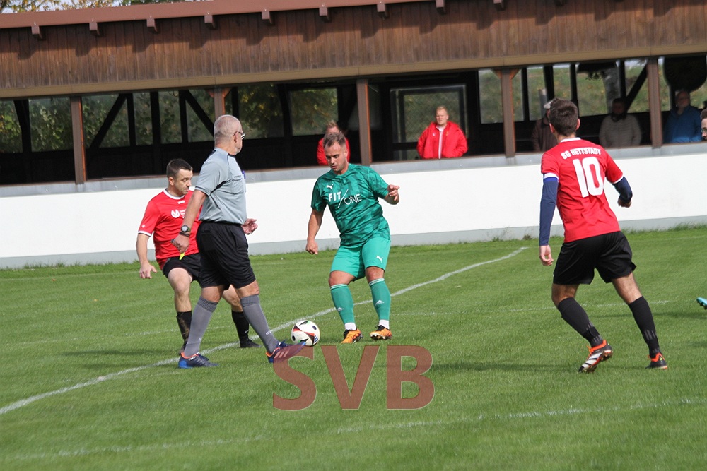 Mit ihrer ersten Torannäherung glichen die Gäste in der zehnten Minute etwas überraschend aus – nach einem Freistoß, der kurz ausgeführt wurde, kombinierten sich die in rot spielenden SGler bis zu Johannes Lannig durch, der aus ganz spitzem Winkel fast von der Grundlinie ins lange Eck zum schmeichelhaften Ausgleich traf.