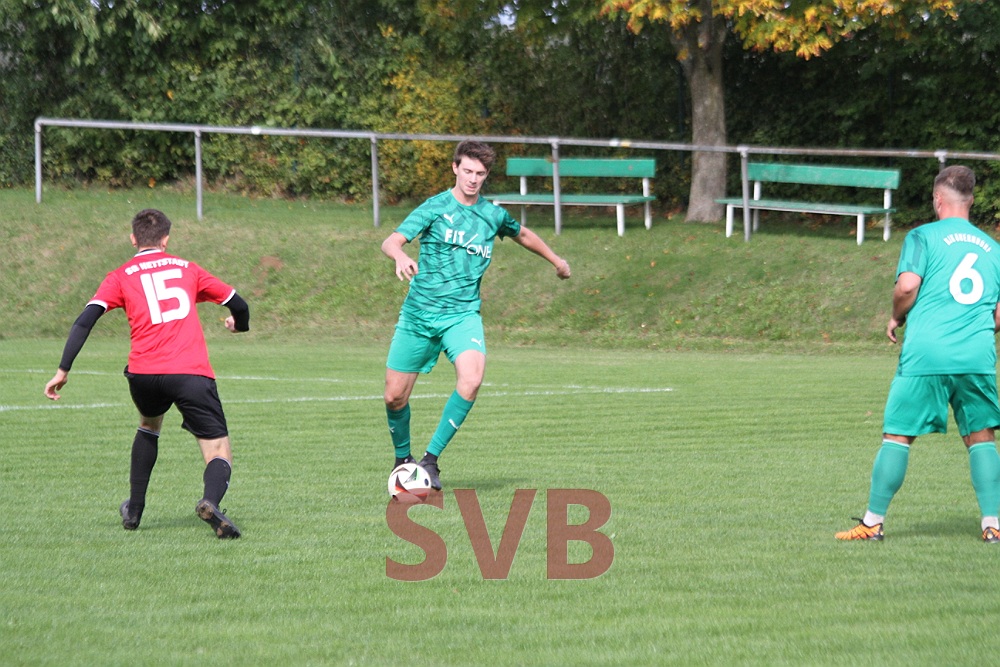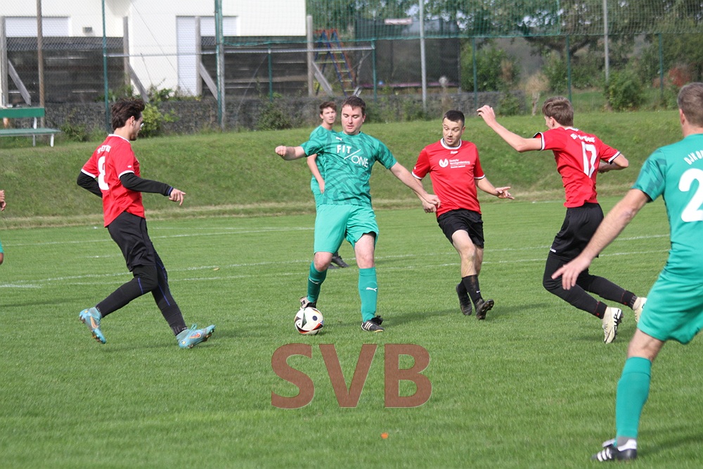 Nach ein paar Halbchancen auf beiden Seiten wurde es in der 26. Minute erst wieder brandgefährlich – Christian Voss fand den perfekten Moment für den gestarteten Stefan Straub, doch der scheiterte am herausstürmenden Keeper. Und wenig später war es erneut die Kombi Voss und Straub, Stefan ließ sogar noch den letzten Verteidiger ins Leere laufen, vertändelte aber letztendlich die Murmel noch.