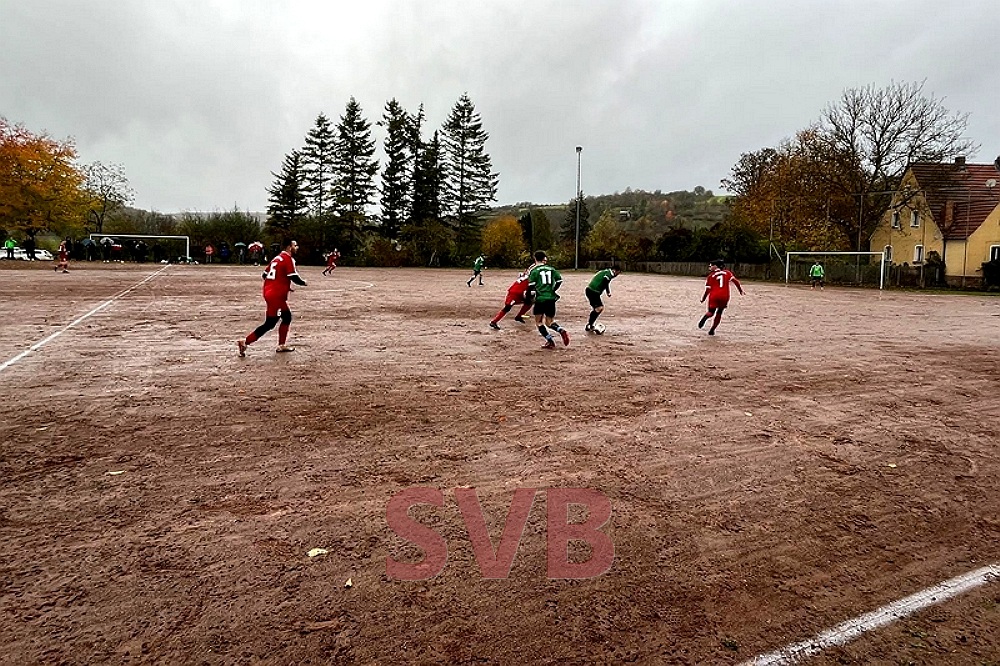 Dementsprechend gehörten die ersten Spielanteile auf einem desolaten Platz den Thüngenern, die zwei Mal aus spitzem Winkel abzogen, aber Florian Bauer vor keine ernsten Probleme stellten. Nach 16 Minuten schob Philipp Krenig allerdings nach einem Schnittstellenball zum 1:0 ein. Der SVB gab sich damit aber keineswegs schon geschlagen und hatte noch vor der Halbzeit zwei Hundertprozentige.