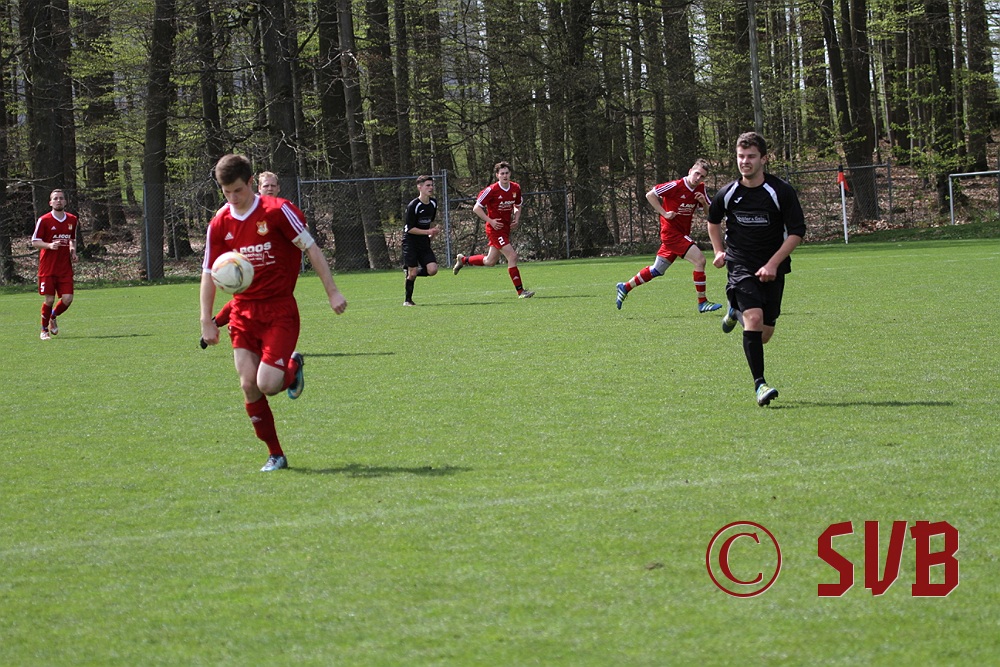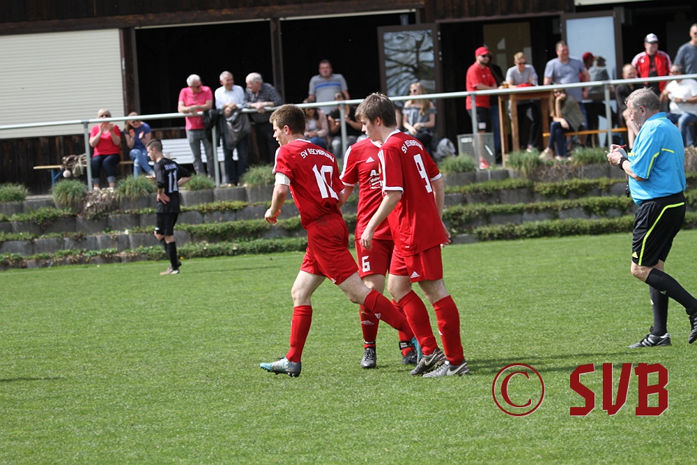 Nun war der SVB wild entschlossen und drängte auf den Ausgleich, der wiederum nur fünf Minuten später auch gelang. Christian Voss spielte Alex Roos mit einem hohen Ball über die Abwehr an und Alex wurde eigentlich etwas zu weit nach links abgedrängt, aber so verlud er kurzerhand noch zwei Verteidiger und schob zum umjubelten Ausgleich ein.