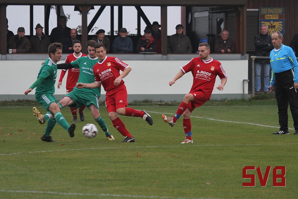 Im Spitzenspiel-Derby in Oberndorf wurde der SVB vor der stolzen Kulisse von 220 Zuschauern gleich in der zweiten Minute kalt erwischt. Ein Ballverlust im Mittelfeld führte dazu, dass Jürgen Beeger gegen DJK-Stürmer André Mussauer die Grätsche auspacken musste. So schlenzte Antonio de Simone den fälligen Freistoß mit links über die Mauer in den rechten Winkel, Horst Wiesmann hatte keine Chance.