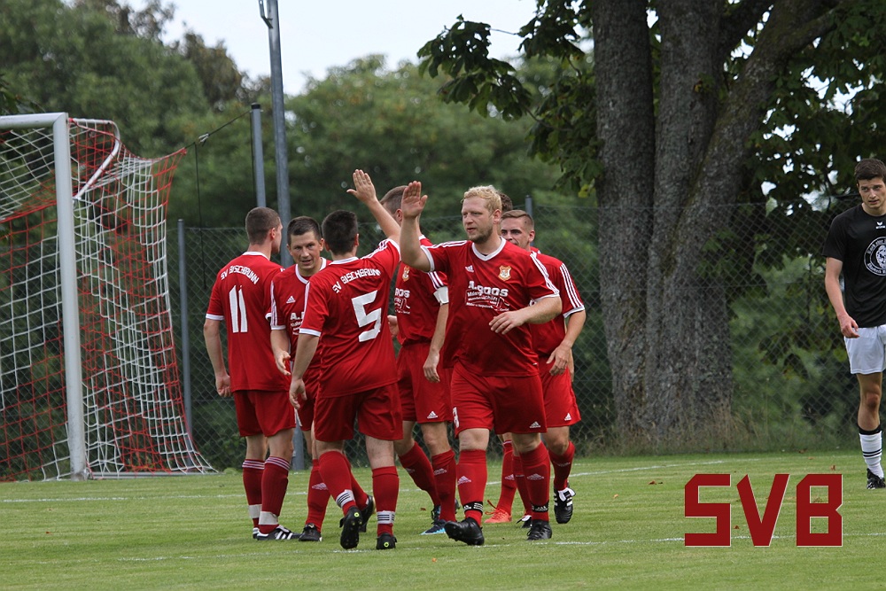 Dieses Tor setzte bei den Rot-Weißen Kräfte frei und so spielte anschließend fast nur noch der SVB, während die Gäste sich hingegen auf Konter beschränkten. Einer davon folgte bereits in der 15. Minute, aber Hannes Full zielte nach einer Flanke per Kopf nicht genau genug und so ging die Kugel über das Tor.