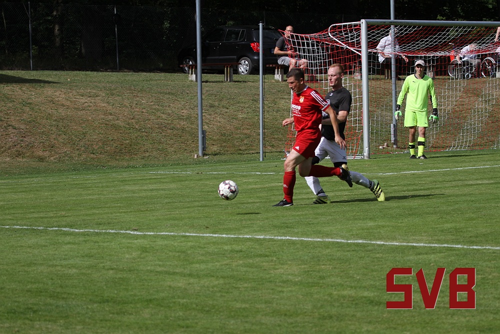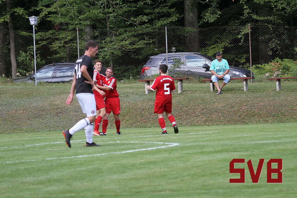 Nach Wiederanpfiff stellten die Gäste um und sorgten durch ihren Spielertrainer - der von nun an die Fäden im Mittelfeld zog - immer wieder für Gefahr. Zwar konnte der SVB zunächst einen Konter fahren und hätte durch Adi Ziem beinahe auf 4:1 erhöht, doch dieser brachte nicht genügend Druck auf die Kugel.