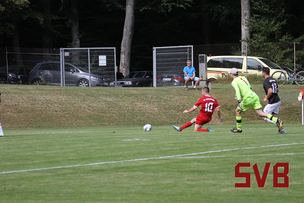 Der SVB dagegen machte es besser: Ein super Spielzug über Benjamin Schwarz und Adi Ziem wurde in der 19. Minute von diesem wunderbar quergelegt und der heraneilende Flo Dreher musste "nur noch" Danke sagen. Zwölf Minuten später fast eine Kopie dieses Spielzuges auf der anderen Seite über Nicolai Albert, doch diesmal zog Flo etwas zu früh ab und so ging der Ball knapp daneben.