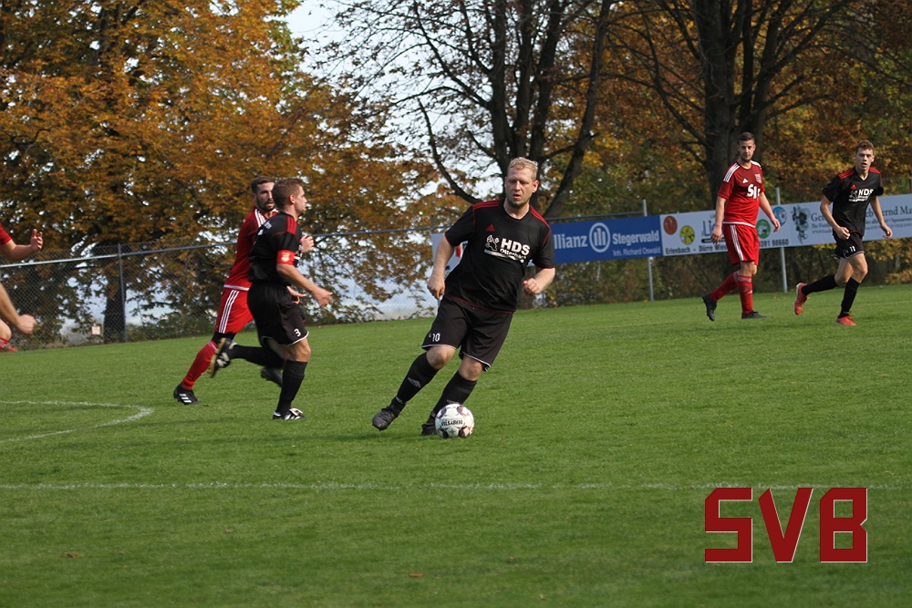 Der SVB erwischte einen ganz schlechten Start und fing sich das fast schon obligatorische Gegentor diesmal bereits nach drei Minuten. Bei einem Angriff über rechts rutschte Jürgen Beeger weg, so dass Eckert querlegen konnte. Dominik Weyerich ließ Martin Günzelmann im Tor mit einem Schuss auf der 16er-Linie keine Chance, der Ball schlug unhaltbar im Winkel ein.