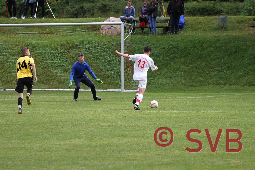 Vom Anstoß weg war der Kampfgeist und die Einsatzbereitschaft der SVBler deutlich zu spüren. Zwar hatte die Heimelf in den ersten 20 Minuten drei Halbchancen zu verzeichnen, aber die ersten beiden SVB-Möglichkeiten hatten es dafür gleich in sich: Erst spielte Christian Voss in der 20. Minute einen super Ball in die Gasse auf Julian Liebler, der damit frei auf Keeper Ruffert zulief, aber an diesem scheiterte. Und fünf Minuten später luchste Adi Ziem dem Innenverteidiger den Ball ab, war dann aber zu uneigennützig und legte aus bester Schussposition noch quer zu Julian Liebler, statt selbst zu schießen. Der Querpass geriet jedoch zu steil und so drosch Julian die Kugel mit dem falschen Fuß über das leere Tor.