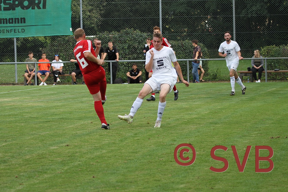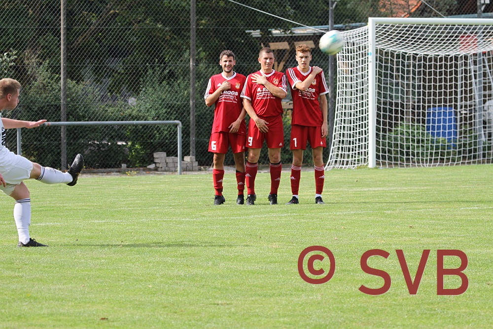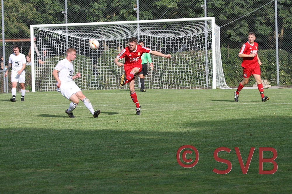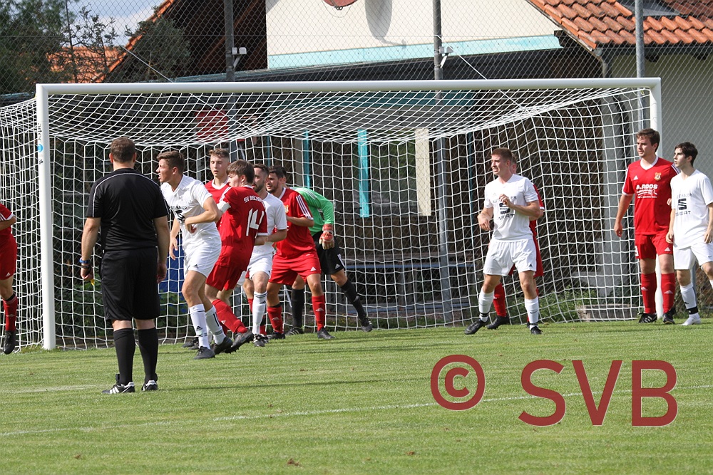 Erneut war ein unnötiger Freistoß über rechts vorausgegangen, den Adi Ziem noch gut blocken konnte, doch Karbach kam nochmals an den Ball und die zweite Flanke wurde von der SVB-Abwehr so unglücklich abgewehrt, dass Pascal Roth am linken 16er-Ecke nahezu unbedrängt zum Schuss kam und in die lange Ecke traf.