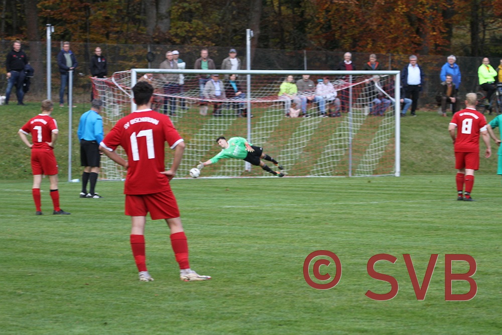 Während vom SVB weiterhin noch überhaupt nichts zu sehen war, folgte in der zwölften Minute der nächste Schock: Nach einem Zuspiel auf Calvin Jankowski drang dieser in den Strafraum ein und wurde von Domi Weisner getroffen – der SR pfiff sofort Strafstoß. Zwar hatte Julian Behl die richtige Ecke, aber der Schuss von Stürmer de Simone war zu platziert und schlug zum 0:2 ein.