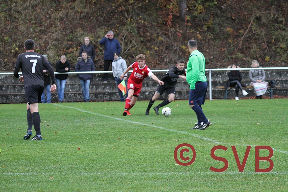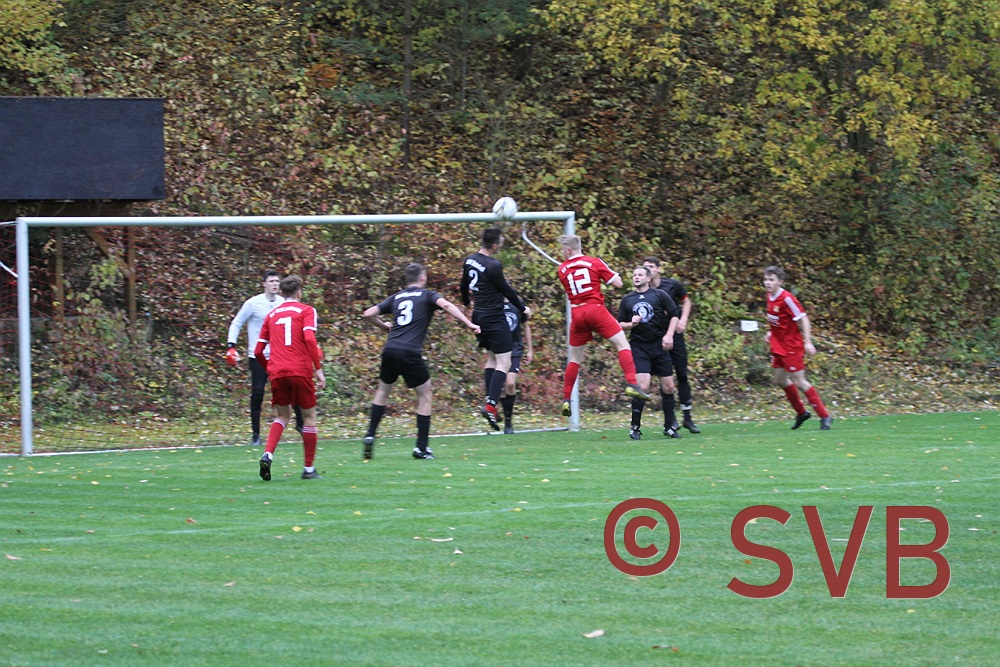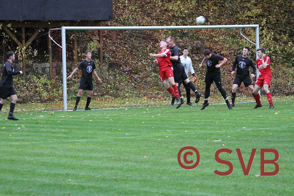 Anschließend war von der DJK nicht mehr viel zu sehen, während der SVB sich in deren Strafraum festspielte. Aber weder erneut Julian Liebler nach einem Steilpass, Adi Ziem nach einem Jürgen-Beeger-Freistoß und nach einem Ballverlust des IVs, noch David Kaufmann bei einem Freistoß konnten den Ball im Tor unterbringen. Auch ein Schuss von Julian Roth aus der zweiten Reihe, der auf der Latte aufdotzte und Florian Dreher nach einem schönen Spielzug verpassten das 1:2 vor der Pause.