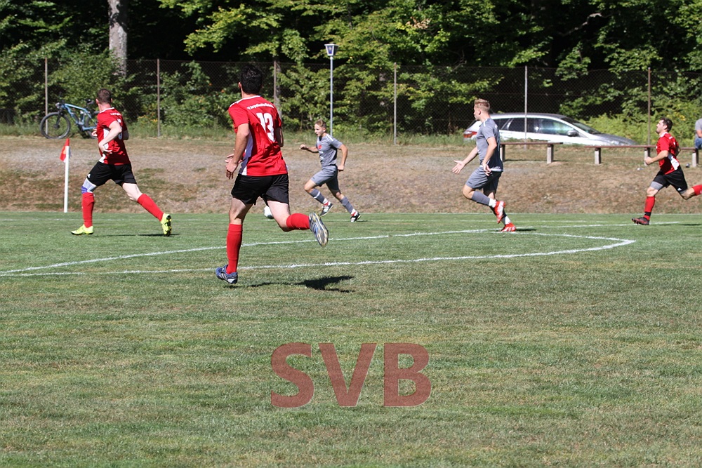 Erst nach einer ordentlichen Ansprache zur Halbzeit präsentierten sich die SVBler in der zweiten Hälfte verbessert und konnten auch prompt in Führung gehen: Endlich kam mal ein Pass in die Tiefe bei Julian Liebler über rechts an, dessen erster Querpass wurde noch geblockt und im zweiten Versuch unterlief der Verteidiger in der Mitte die Flanke, so dass Lars Liebler frei vor Schramm auftauchte und ihn sogar noch tunneln konnte.