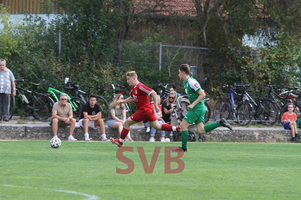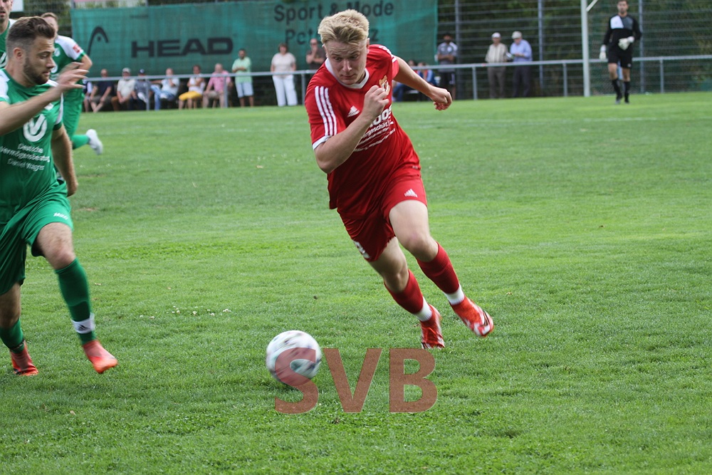Doch der SVB kam fast postwendend zum Ausgleich: Nach einer Flanke von rechts hätte Julian Liebler die Kugel nur über die Linie drücken müssen, aber er brachte das Kunststück fertig, ihn zentral zum Keeper zu stoppen.