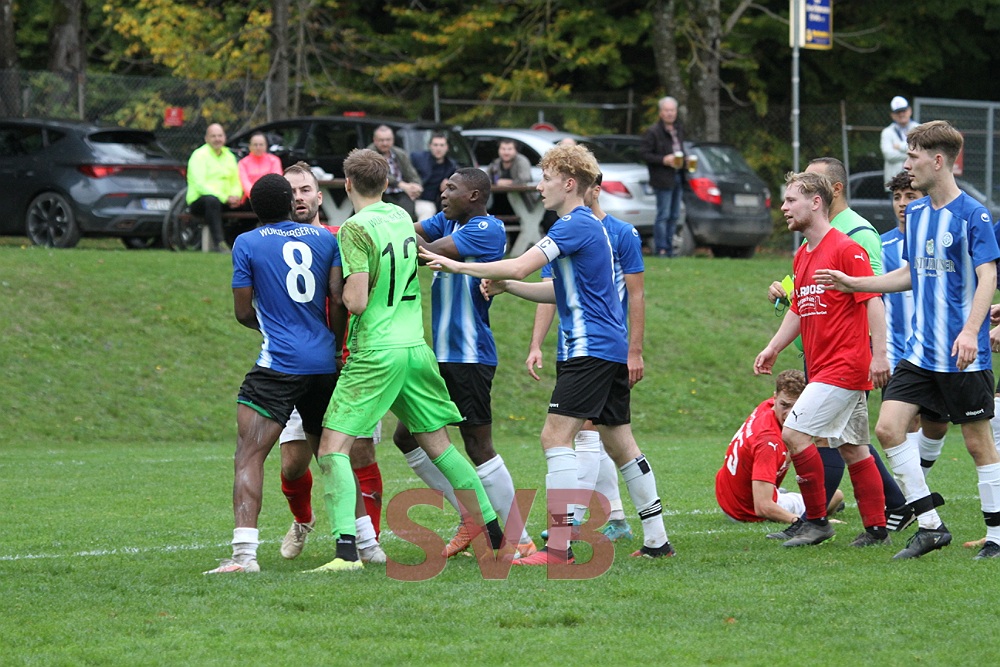 So ließ man die motivierten Gäste vor allem in der ersten Hälfte kaum in Tornähe kommen, auch weil die Birkholz-Elf die taktischen Vorgaben konsequent umsetzte. Dadurch schaffte man es auch, dass die Würzburger sich zwischenzeitlich immer wieder mehr mit dem gut leitenden Schiedsrichter Behxhet Mehana auseinandersetzten, statt Fußball zu spielen. Mehrere gelbe Karten nach Foulspielen und einmal nach Meckern sowie eine Zeitstrafe für Laurin Thein in der 35. Minute nach einem Ellenbogenschlag gegen Lars Liebler, der daraufhin ausgewechselt und blutend behandelt werden musste, waren die berechtigte Folge für den FV.