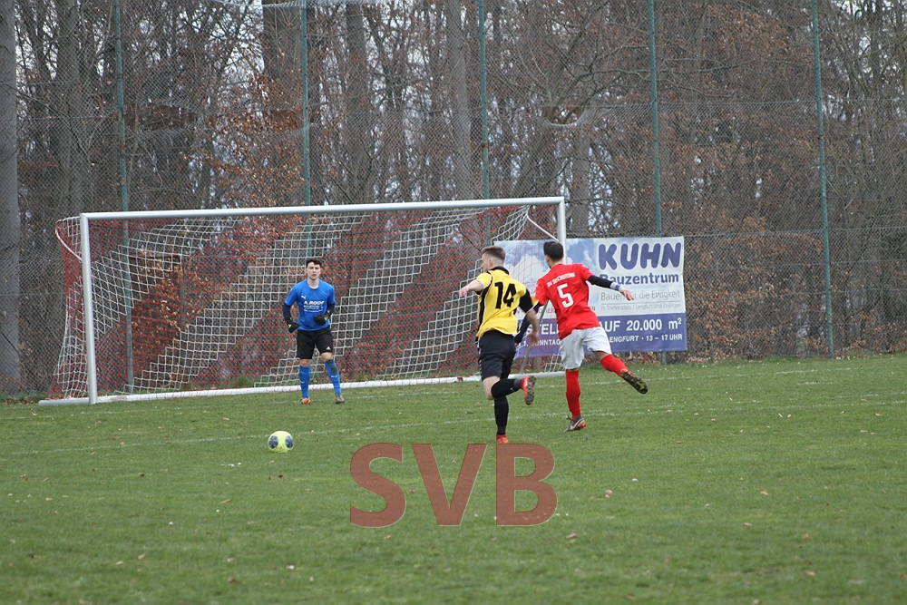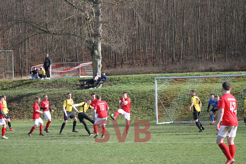 So kam es anders: Nach einer Ecke von Luca Ningler nach einer halben Stunde auf den langen Pfosten war Domi Weisner stark per Kopf zur Stelle, beförderte die Kugel damit quer zum Tor und aus dem Getümmel drosch Julian Liebler das Spielgerät zur SVB-Führung unter die Latte.