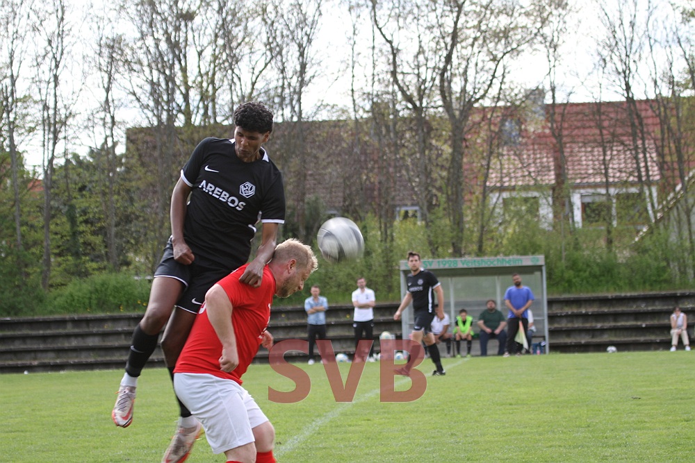 Nach dem verschenkten Sieg in letzter Sekunde gegen Urspringen/Karbach wollte das Team von Spielertrainer Jan Birkholz in Veitshöchheim Wiedergutmachung betreiben. Leider fielen Paul Jaklin kurzfristig und Jürgen Beeger verletzungsbedingt aus, so dass der seit Wochen angeschlagene Julian Roth erneut von Beginn an auflaufen musste. Zudem weilte Luca Ningler noch immer im Urlaub – für ihn begann Youngster Jens Väth, der seine Sache ordentlich machte. Auf der Bank nahmen ausschließlich Spieler Platz, die zuvor bereits in der Reserve gekickt hatten.Trotz aller personellen Probleme fanden die Rot-Weißen gut ins Match und standen zunächst hinten sicher. Nach knapp zehn Minuten die erste Chance, die es gleich in sich hatte: Nico Albert flankte schön über links in die Mitte und Adi Ziem stand goldrichtig, traf bei seinem Abschluss aber leider einen Verteidiger im Gesicht.Zwölf Minuten später die nächste gute Möglichkeit: Nach einem schönen Ball von Julian Roth ließ sich Julian Liebler im 16er leider etwas zu lange Zeit, so dass ihm ein Verteidiger noch fair die Kugel abluchsen konnte.Nach einer guten halben Stunde hätte spätestens die SVB-Führung fallen müssen: Nach einem starken Diagonalball von Adi Ziem nahm Julian Liebler das Leder noch gut per Brust mit, scheiterte dann aber im Eins-gegen-Eins am stark reagierenden Keeper Dustin Fishman.Im Gegenzug war Niklas Saal plötzlich über links durch, leider ging Keeper Julian Behl etwas übermotiviert am 16er-Eck mit dem Fuß Richtung Stürmer und Ball, statt die Pille mit der Hand aufzunehmen. SR Walter blieb daraufhin keine andere Wahl, als auf den Punkt zu zeigen. Marcus Füller verwandelte sicher und Veitshöchheim führte mit der ersten gefährlichen Aktion sofort 1:0.Nur zwei Minuten später hätte das Team von Magnus Rentzsch beinahe schon erhöht, aber der Schuss von Niklas Saal von rechts landete am Pfosten.Der SVB gab sich aber noch nicht auf und hatte kurz darauf die Chance auf den Ausgleich. Nach einer Flanke von Christian Voss scheiterte Adi Ziem allerdings mit seiner Direktabnahme ebenfalls an Dustin Fishman.Wenig später ging es für Julian Roth doch nicht mehr weiter. Da Davor Miskovic noch nicht fertig umgezogen war, spielte der SVB kurz in Unterzahl, die prompt ausgenutzt wurde: Ein Steckpass von Niklas Saal auf Robin Wolz genügte, dieser ließ Behl im Tor keine Chance.So stand zur Pause nach einem eigentlich recht ausgeglichen Spiel eine 2:0-Führung für Veitshöchheim zu Buche, da die Heimelf ihre Chancen einfach besser nutzte.
