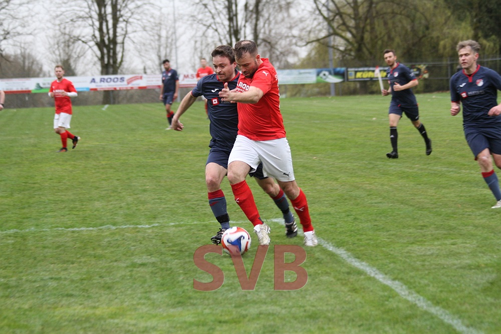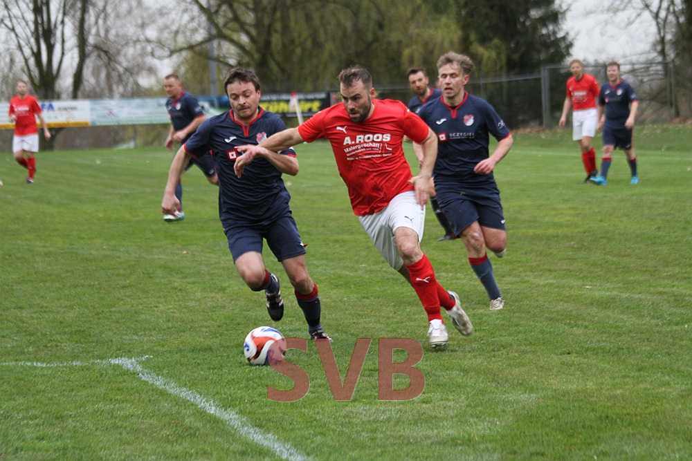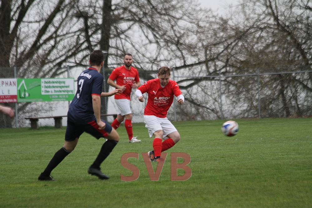 Auch nach Wiederanpfiff hatte der SVB noch die gleiche Unordnung wie vor dem Pausentee und ermöglichte den Gästen prompt noch das 2:4 – Christoph Rockelmann nahm einen langen Ball gut mit der Brust an und konnte trotz Bewachung einnetzen.
