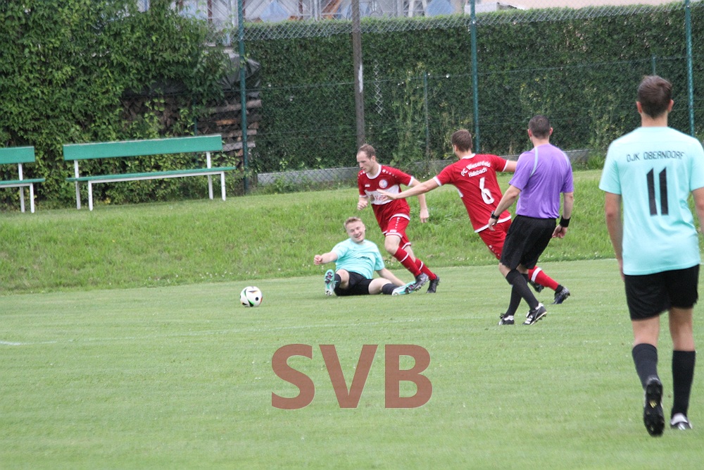 Spätestens nach 21 Minuten hätte Bischbrunn/Oberndorf dann allerdings in Führung gehen müssen. Der stark spielende Julian Roth setzte sich über Außen gut durch, spielte im richtigen Moment in den Rückraum und fand Kapitän Marc Weigand. Dieser zögerte allerdings viel zu lange mit dem Abschluss, so dass sein Schuss letztendlich knapp links vorbei ging.