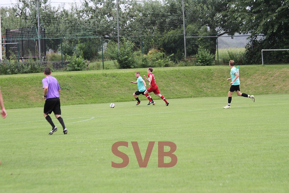 Die in türkis spielenden SGler warfen sich allerdings von Anfang an in jeden Zweikampf und agierten kompakt und diszipliniert gegen den FC. So gehörte auch die erste Möglichkeit der Büttner-Truppe. Nach einer Flanke von Rechts hatte Lars Lieblers Kopfball allerdings nicht genügend Power.
