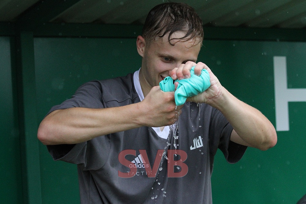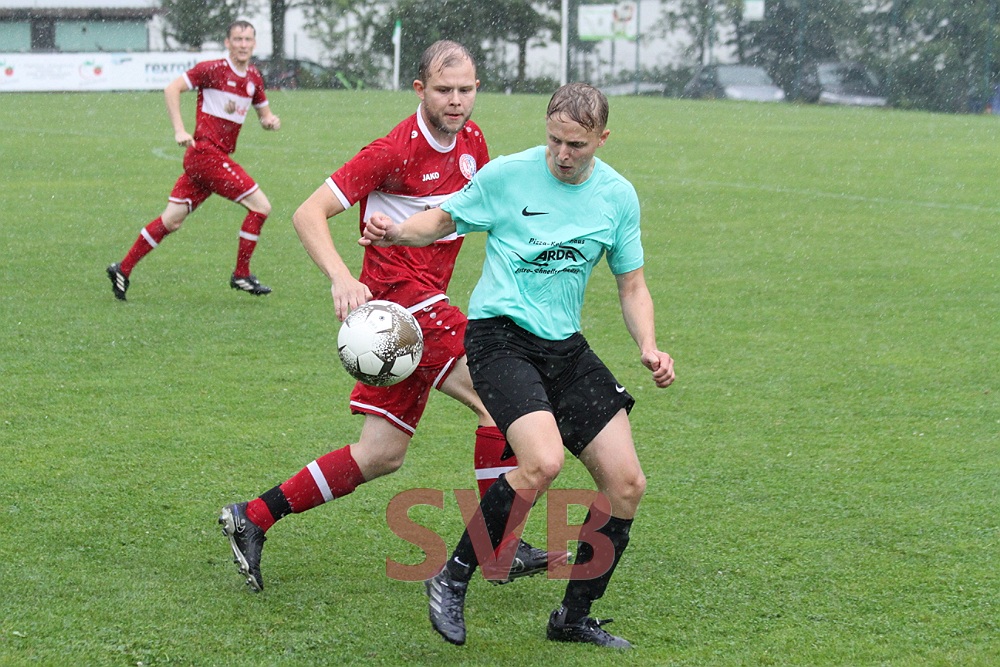 Die zweite Halbzeit verlief aufgrund des einsetzenden Platzregens eher ereignisarm und mit vielen Zweikämpfen im Mittelfeld. Julian Roth kam allerdings in der 53. Minuten nach einem flachen Freistoß in den Fünfer an die Kugel und traf den Pfosten.