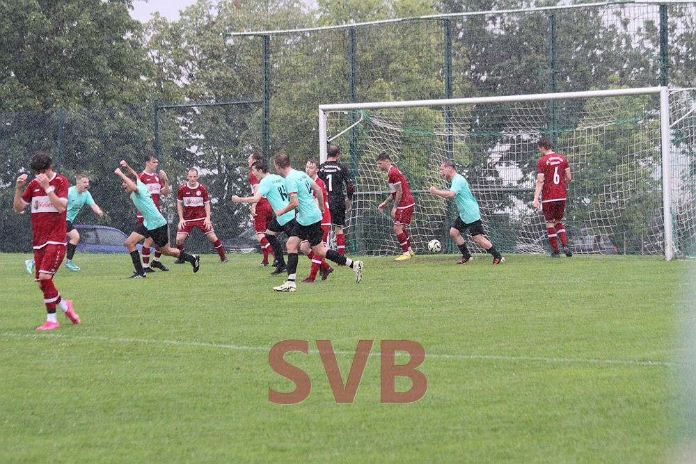 Die SG egalisierte allerdings noch vor der Pause, wenngleich etwas kurios: Ein Freistoß im Mittelfeld wurde an die linke Eckfahne geschlagen und eigentlich schon verloren gegeben, aber Luca Ningler setzte als einziger nach und stibitzte dem nach außen stürmenden Keeper Wolpert tatsächlich die Pille. Seine anschließende scharfe Flanke mit letzter Kraft wurde zum umjubelten 1:1 abgefälscht.