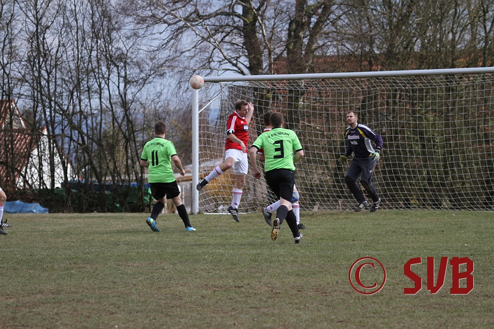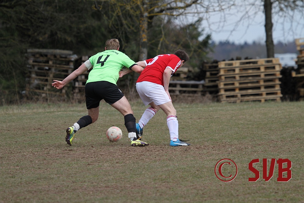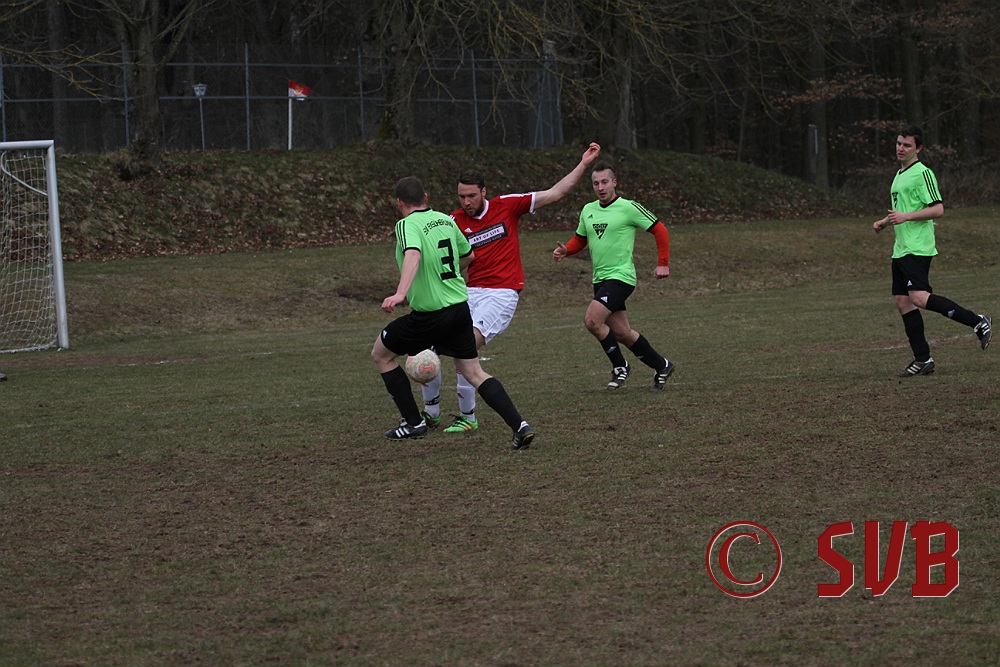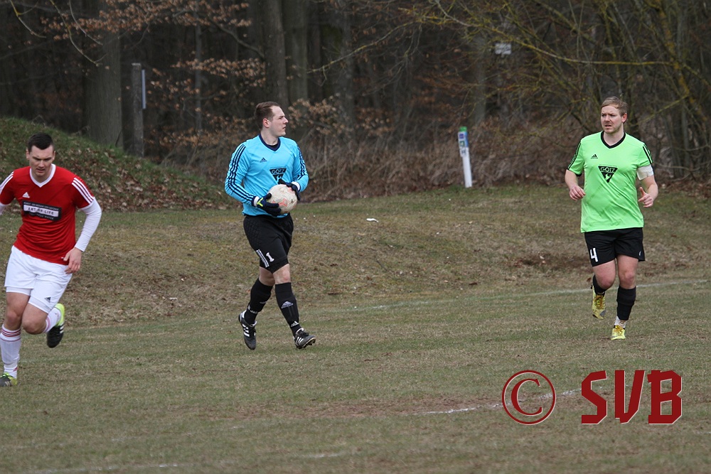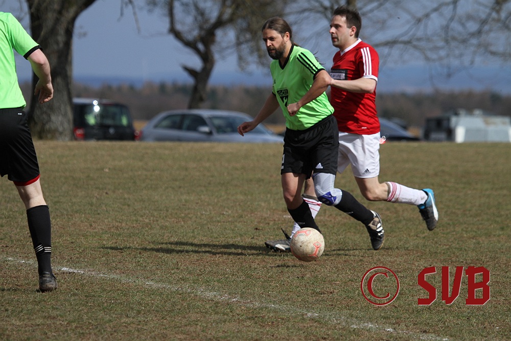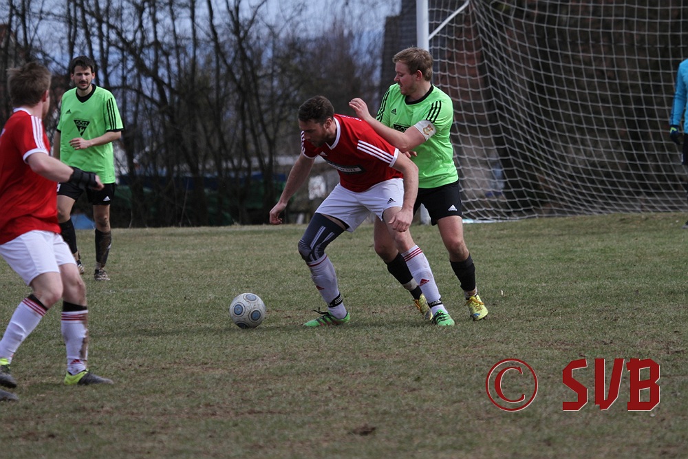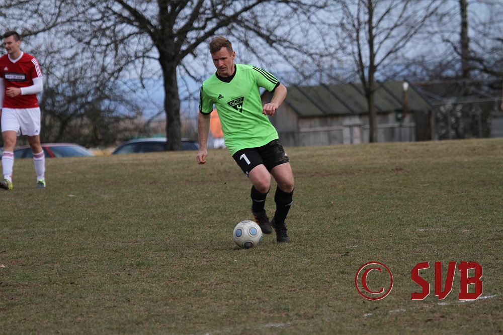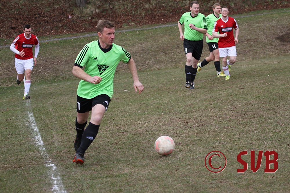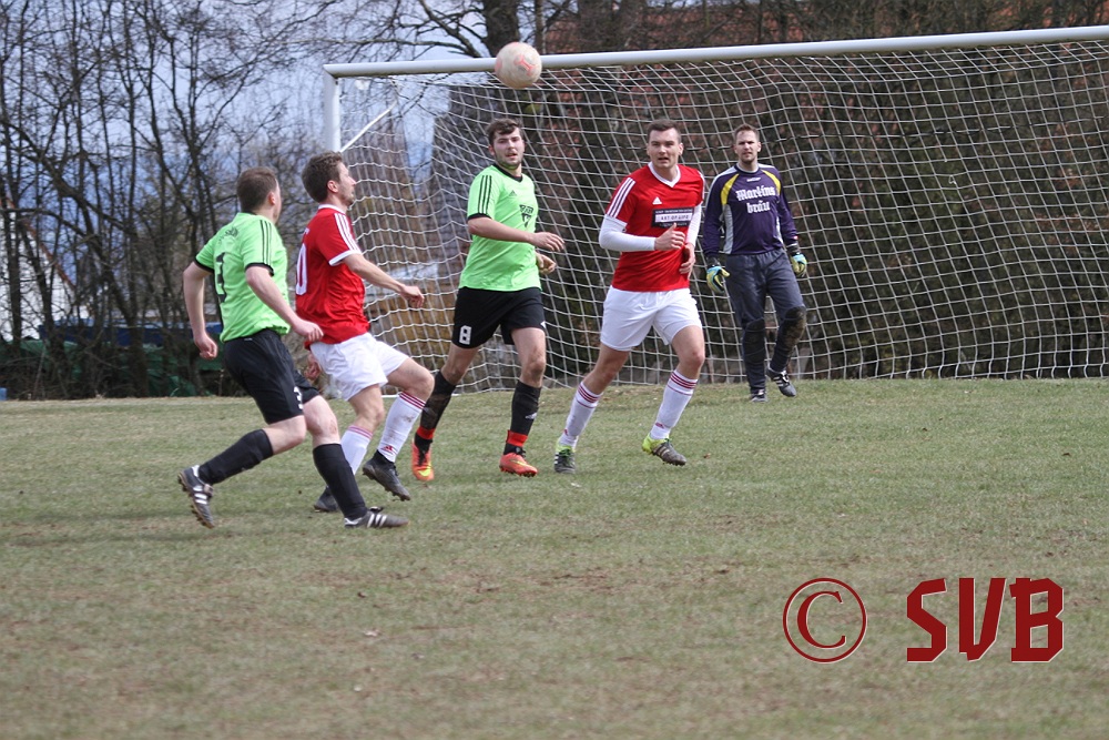 Anschließend stellte die SVB-Offensive ihre Bemühungen aber komplett ein und der TSV kam immer besser ins Spiel. Hinzu kamen noch sehr strittige Entscheidungen von SR Wisniewski, der quasi jeden noch so klaren Abseitsangriff weiterlaufen ließ. In der 29. Minute war es dann auch geschehen - Patrick Wiesmann verlor im Mittelfeld nach einem schlampigen Zuspiel den Ball, Daniel Bergmeier wurde im Abseits angespielt und scheiterte an einer starken Parade von Fabian Schulz, aber Andreas Herteux verwertete den Abpraller.