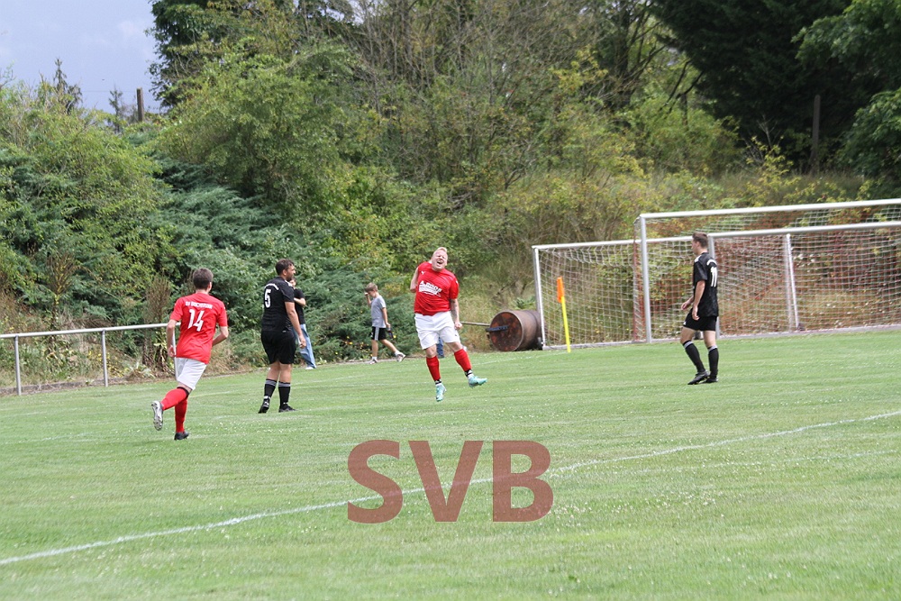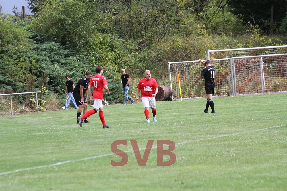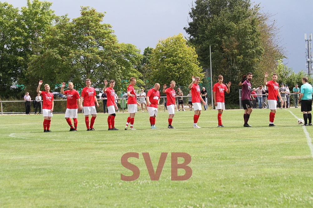 Trotzdem absolvierten die Rot-Weißen vom Anstoß weg eigentlich eine recht ordentliche Partie, hatten einen guten Spielaufbau und gingen in der 20. Minute verdient in Führung. Christian Voss kam ca. 30m zentral vor dem Tor an das Spielgerät und ihm verunglückte das Abspiel eigentlich, aber ein Urspringer Verteidiger trat darüber, so dass Tommy Weidner freie Bahn hatte und zu seinem ersten SVB-Pflichtspieltor vollstreckte.