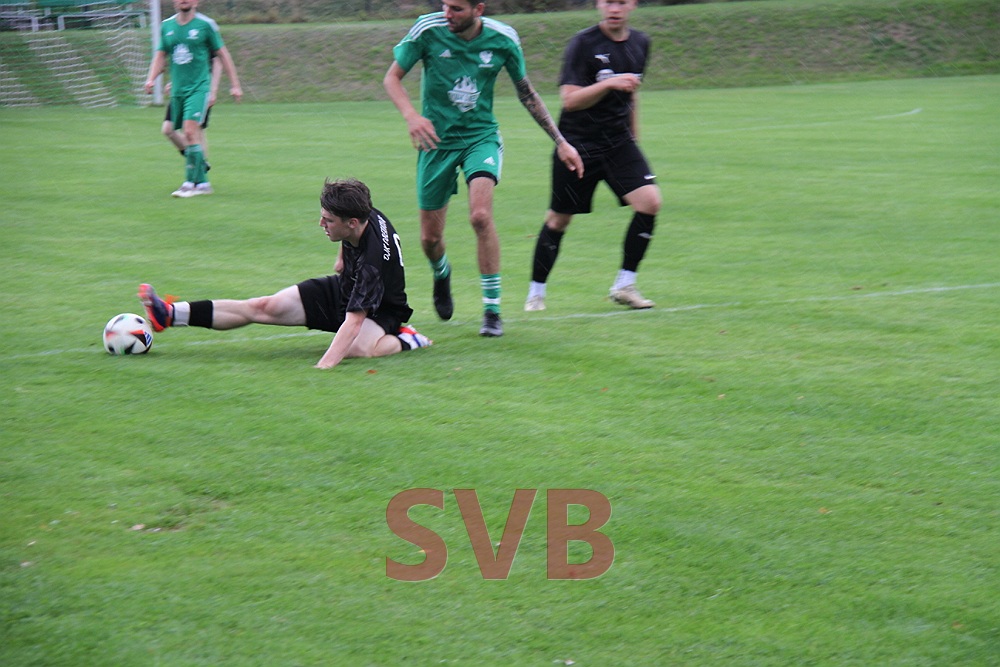 Zwar verkürzte Julian Belli postwendend nach dem Anstoß auf 1:2 nach schönem Gassenball und wenige Momente später visierte Felix Wiesmann gar das Lattenkreuz an, aber die gute Phase hielt nicht lange an. Denn durch einen Fehler von Keeper Home und einem schlampigen Abspiel im Spielaufbau von Luca Ningler stand es schon 1:4 zur Halbzeit und nach knapp einer Stunde erhöhten die Gäste gar auf 1:7, so dass manchem Zuschauer schon Angst und Bange wurde. Hierbei reichte teilweise ein Pass aus, um die ganze Abwehr auszuhebeln. Dem 1:7 ging ein klares Foul von Jürgen Beeger voraus und Markus Roth verwandelte den Strafstoß sicher.
