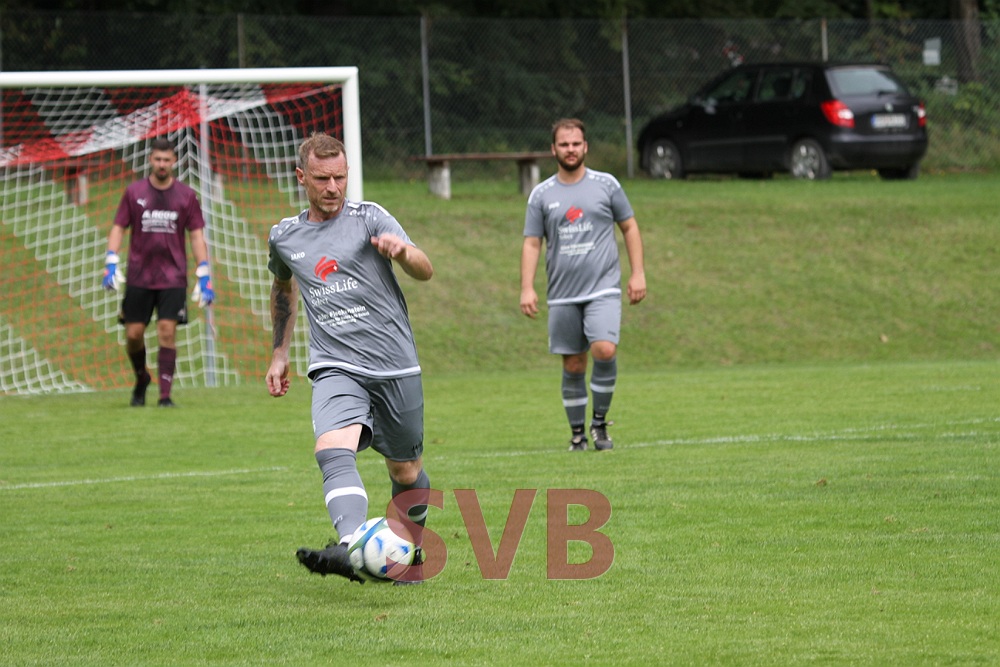 Zwar landete die Kugel kurz nach Anpfiff durch die SVB-Abwehr abgefälscht schon am eigenen Pfosten, aber anschließend erwischten sogar die in grau spielenden Bischbrunner den besseren Start. Roland Liebler schickte im direkten Gegenzug André Wagner perfekt auf die Reise, aber der scheiterte mit einem Pressschlag am Keeper. Auch Florian Bauer hatte zwei sehr gute Möglichkeiten. Im ersten Versuch, nach astreinem Querpass von Martin Günzelmann, verstolperte er jedoch und nur zwei Minuten später brachte er nach feinem Zuspiel von Roland Liebler nicht genügend Druck auf seinen Abschluss.